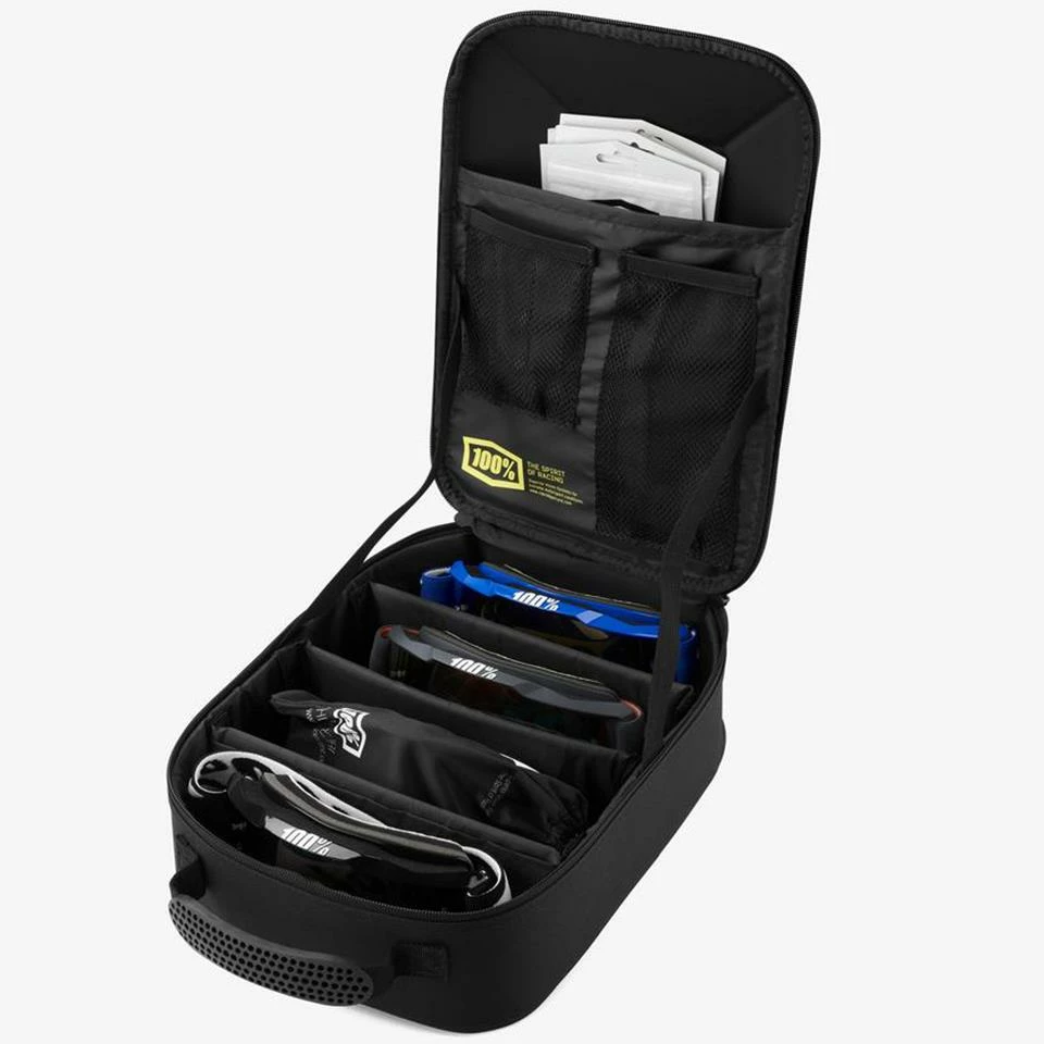 Transport your goggles in style with 100%’s custom carrying case. Features a padded interior and organization to keep goggles, lenses, and accessories organised and secure. Stores up to 4 pairs goggles and accessories.