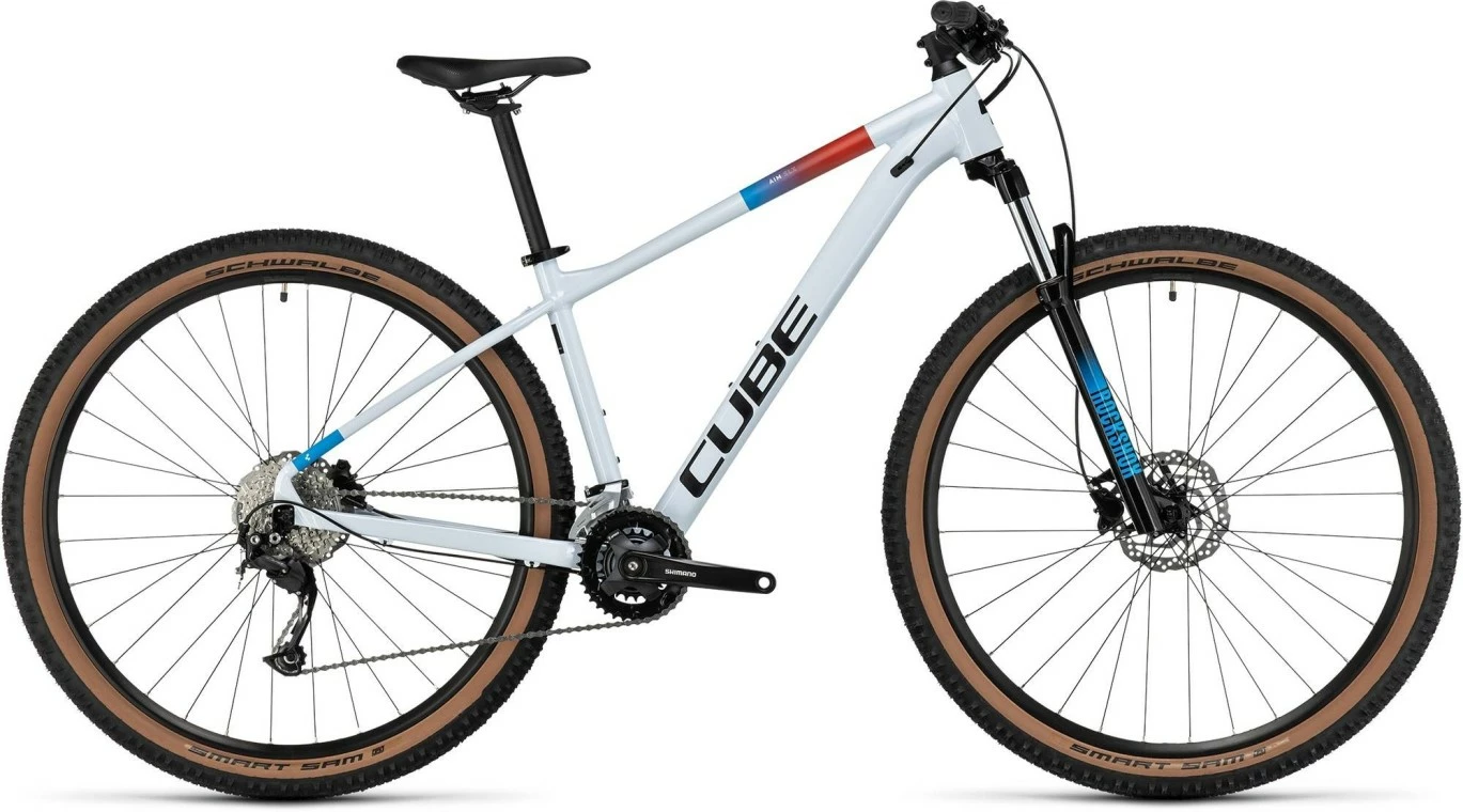 Cube Aim SLX 2023 hardtail mountain bike, white & blue & red