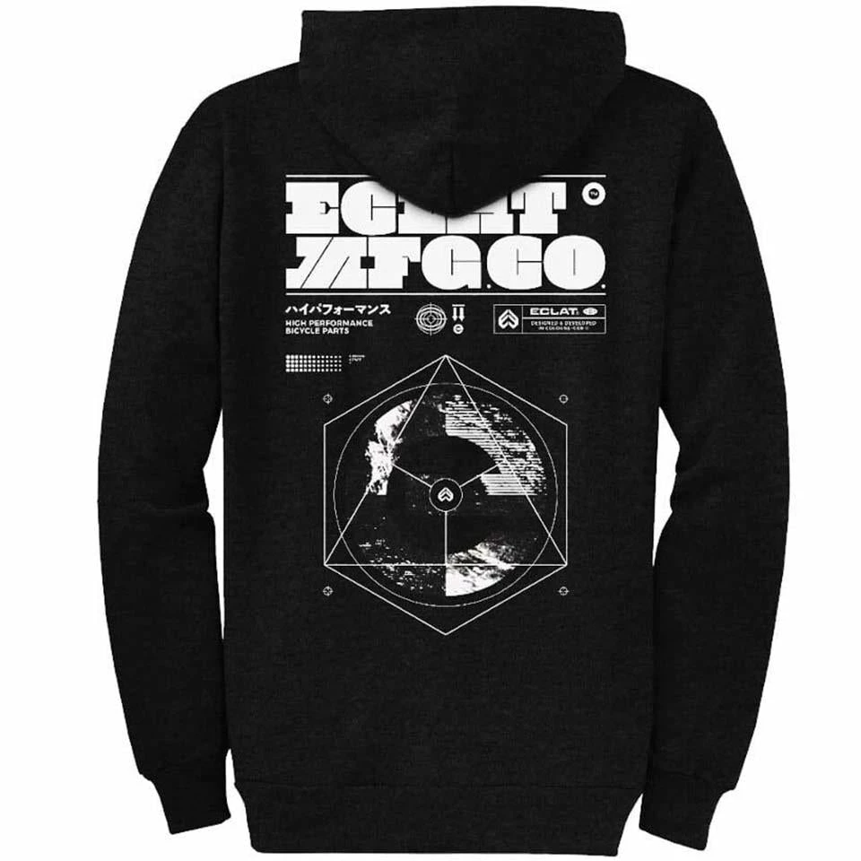 The Eclat Radar Zipper Hoodie is made of 50% cotton, 50% polyester with an Eclat logo screen printed on the front and back.