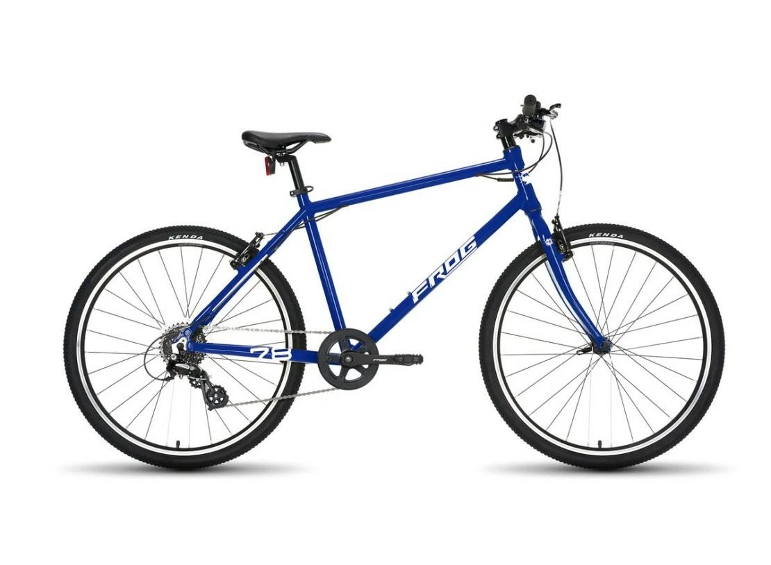 The 24-inch hybrid Frog 78 kids’ bike is the ideal multi-purpose geared bike, suitable for 13+ year-olds. This premium hybrid children’s bike has a lightweight, sturdy aluminium frame, weighing 10kg making the bike easy to manoeuvre on roads, pavements, towpaths and forest trails. It comes with Kenda small block eight tyres for maximum stability and grip, full-length mudguards and the option to attach a pannier rack to the frame, for transporting school books and sports equipment.
