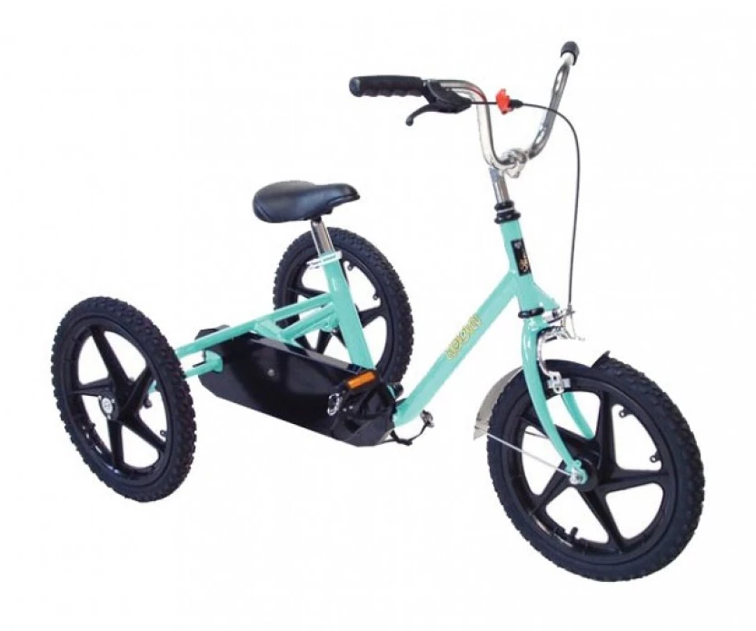 Everything about the Robin has been thoughtfully put together for comfort and safety: the steering stop combines with the powerful front calliper brake to provide stability and control, the single speed fixed gear is easy to pedal without complication, the wide padded saddle is at once comfortable and supportive, and the moulded plastic wheels and fully enclosed chaincase prevent any injury to wandering hands.