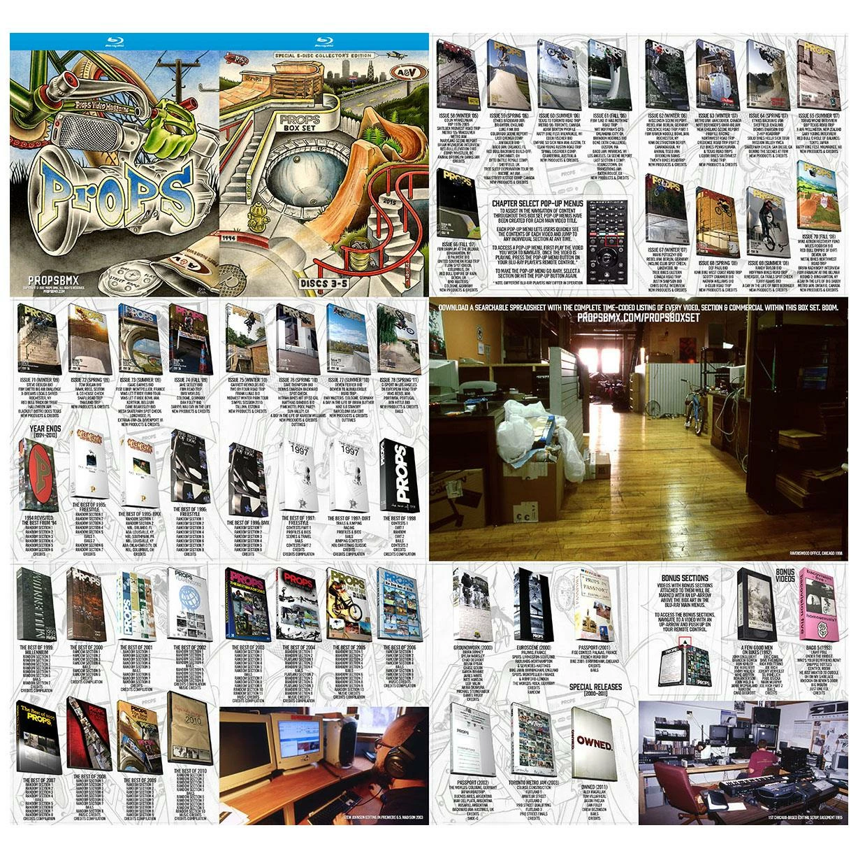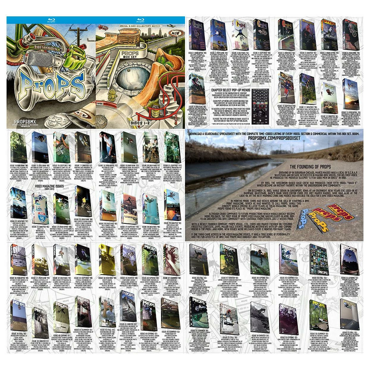 5 Disc Blue-ray box set from Props. Featuring: All Video Magazine Issues 1 – 78 (1994-2011), all 20 Year End Best Ofβs & all Credits Compilations. All Special Releases – including Groundwork, Euroscene, Passports, Metrojam & Owned. Over 100 bonus sections aggregated from Issues & Special Releases. All original commercials included in every Issue. Bonus videos from Propsβ founders – including “A Few Good Men” and “Baco 5”. Beautiful 1080p motion menus featuring high res photo loops. Chapter select pop-up menus for every video in the box set. All videos sourced from 1st-gen analog and/or digital masters. Nearly 120 hours of high quality H.264-encoded content. Dolby Digital Professional audio. βMid-school bible with over 20 years of BMX history, progression & Props-style documentation.