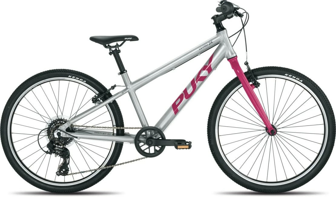 The ergonomic frame serves as the basic structure of the PUKY S-Pro 24, which is only one of many aluminium lightweight components. The aluminium fork, aluminium crank and aluminium seat post ensure further weight savings. The S-Pro 24 weighs in at only 9.2 kg and can still carry loads of up to 100 kg. PUKY has not saved on safety. The PUKY S-PRO 24 has the reflector set, non-slip pedals and so far the only V-brake for children that conforms to standards. This ensures that the braking force is transmitted in a controlled and child-friendly manner. The S-PRO 24 is light, ergonomic and, above all, intuitive to operate thanks to its single compartment drive. The Shimano Tourney 8-speed gearshift provides support when climbing or accelerating. Children from the age of 8 and a size of 128 cm have the perfect everyday vehicle with their new PUKY S-Pro 24. A specially developed children’s saddle is also on board. The seamless saddle blanket creates comfort on short and long distances. The shock-resistant powder coating is applied at our factory in WΓΌlfrath and ensures the PUKY S-Pro 24 is particularly durable. The PUKY S-Pro 24 is available in the colours silver-orange, silver-blue and silver-berry.