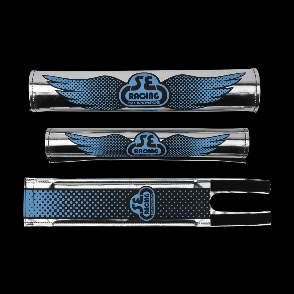 The SE Racing wing logo is emblazoned boldly on this classic 3pc padset. These pads will dress up any bike, old school or new!