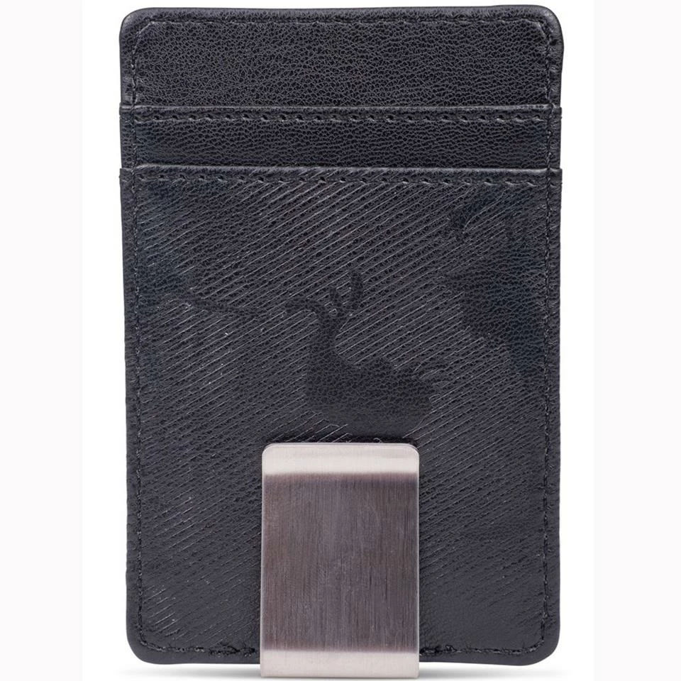 Front pocket style PVC construction wallet with printed and embossed logos. With metal clip and 3 card pockets.