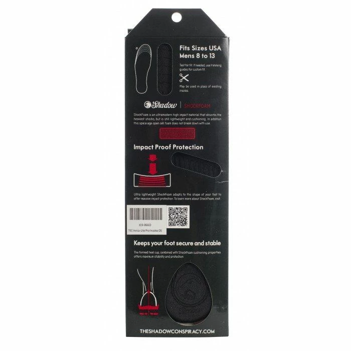 The Shadow Invisa-Lite Pro Insoles are designed to keep your foot secure and stable, while providing support and impact defense – they call it Impact Proof Protection. BMX shoes are notoriously flat with little to no protection in the way of energy absorption inside the shoe. Thatβs why Shadow created the InvisaLite Pro Insoles, to keep riders rippinβ even after the harshest of landings. Engineered with an ergonomic shape featuring a deep heel cup and mid arch that evenly distributes weight, alleviating joint stress during the heaviest impacts. The Invisa-Lite Pro Insole come equipped with Stabalite and ShockFoam Impact Proof Protection materials Shockfoam ensures that the force of the impact is ABSORBED, not rebounded while molding to the shape of your foot. Stabalite cushions and stabilizes. Layered together with a moisture wicking upper fabric, all three materials work together to guarantee high performance, protection, durability and ultimate comfort.