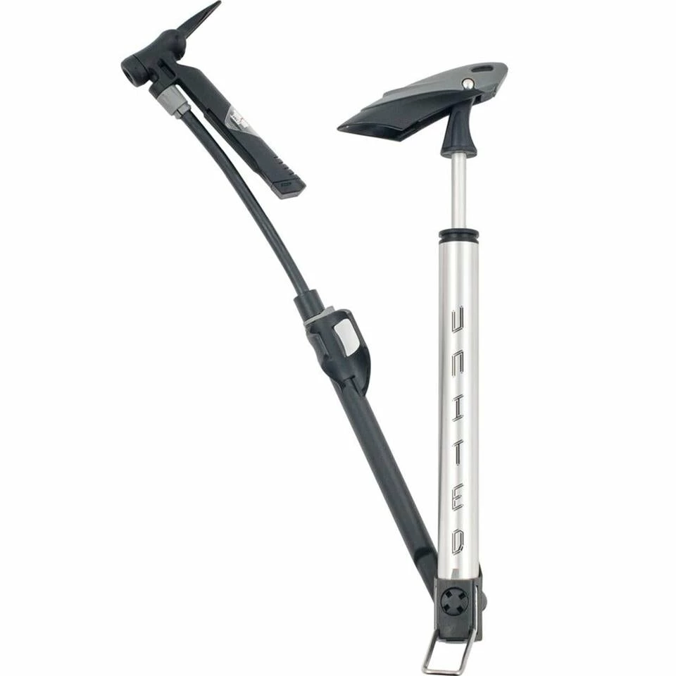 11β³ micro hand pump from United. Precise in-line gauge and flexible telescoping hose. Fold out leg and βTβ handle for easier use. 140 PSI max pressure. Works on Presta & Schrader valves.