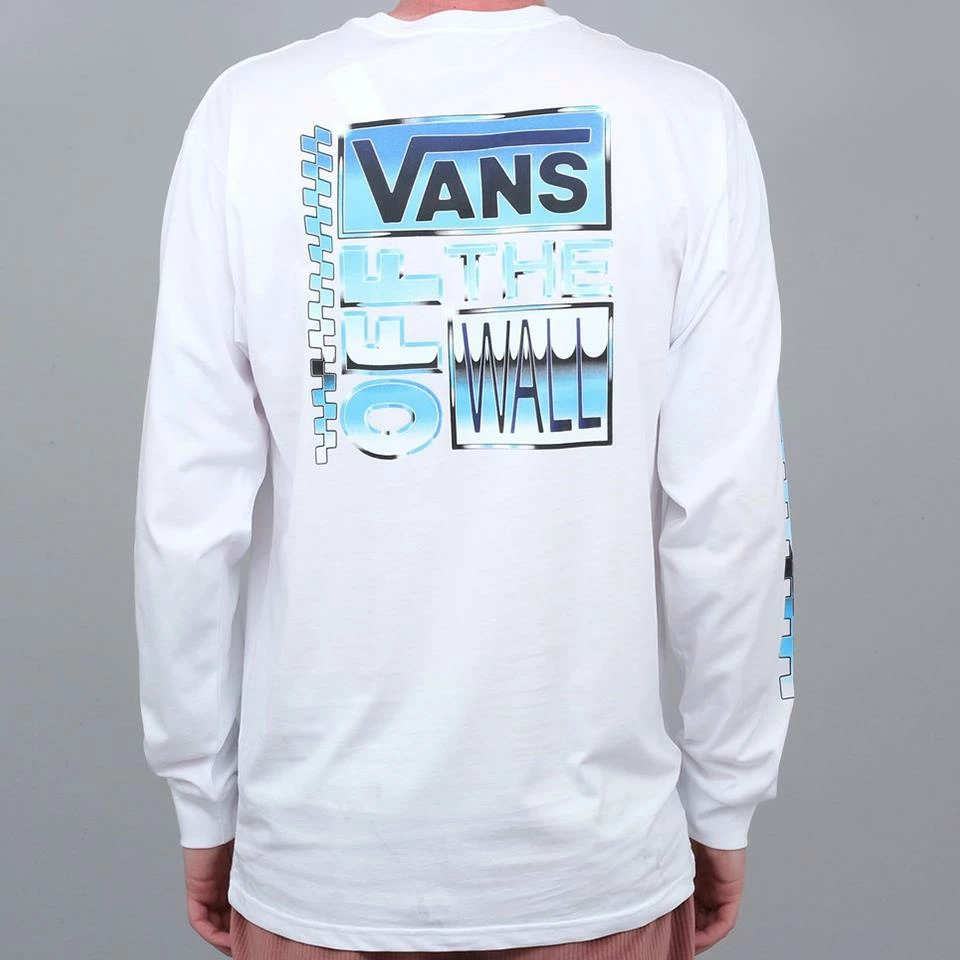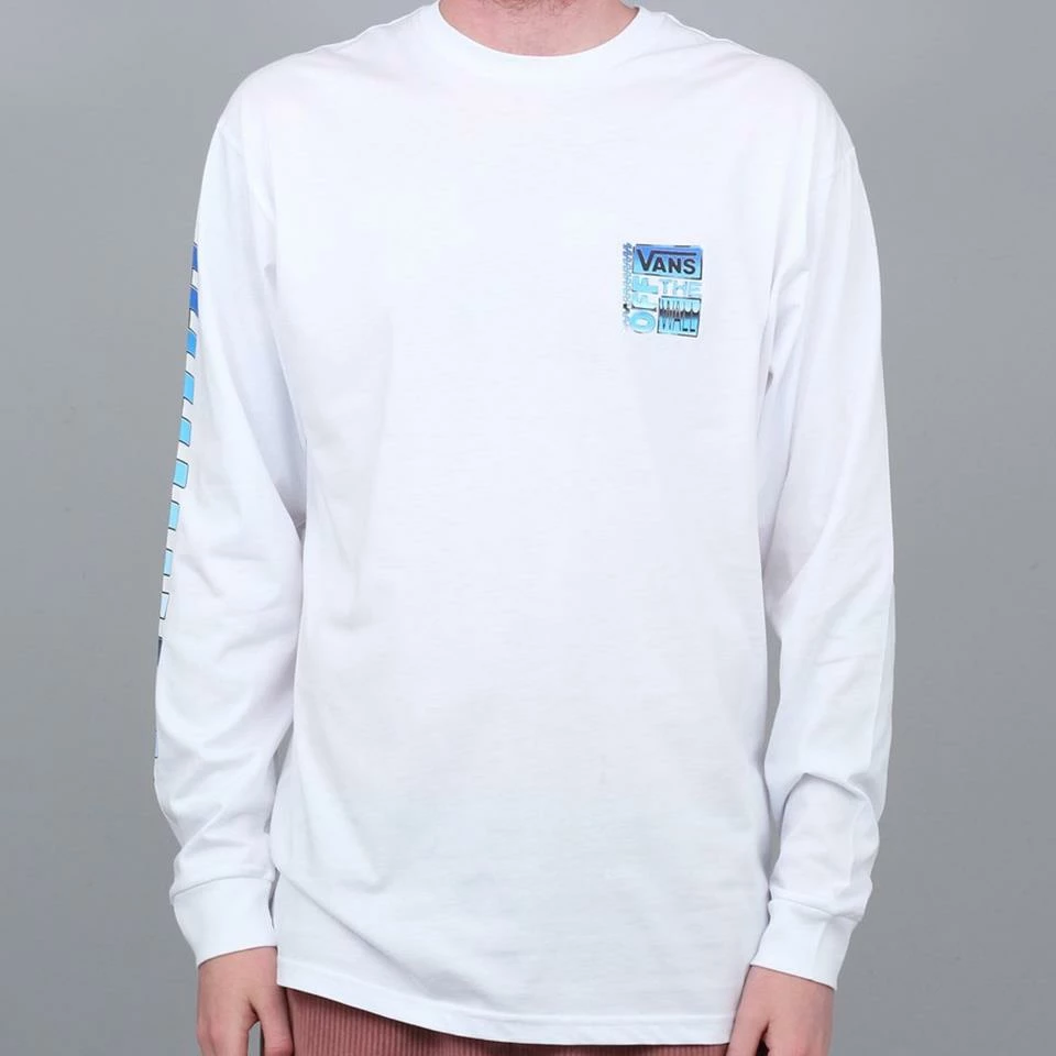 Vans AVE Chrome Longsleeve T-Shirt White. 100% cotton. Vans Off The Wall print on breast and back, Print on the right arm and ribbed collar and cuffs