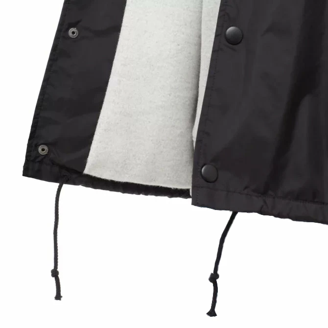 The Riley Jacket is a water resistant, 100% nylon Coach jacket with a fully-lined fleece body and hood made with 70% cotton and 30% polyester. This classic hooded jacket also features logo details at the left chest and slit pockets at the hips.