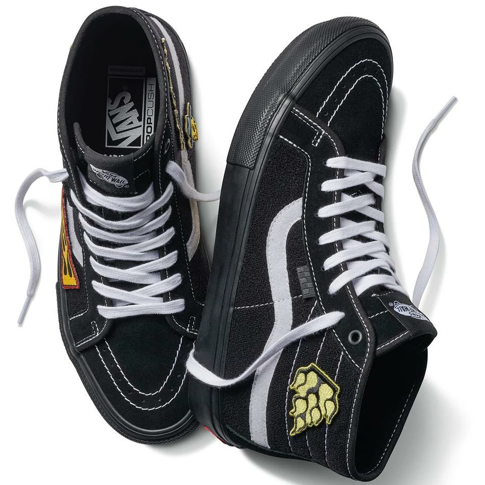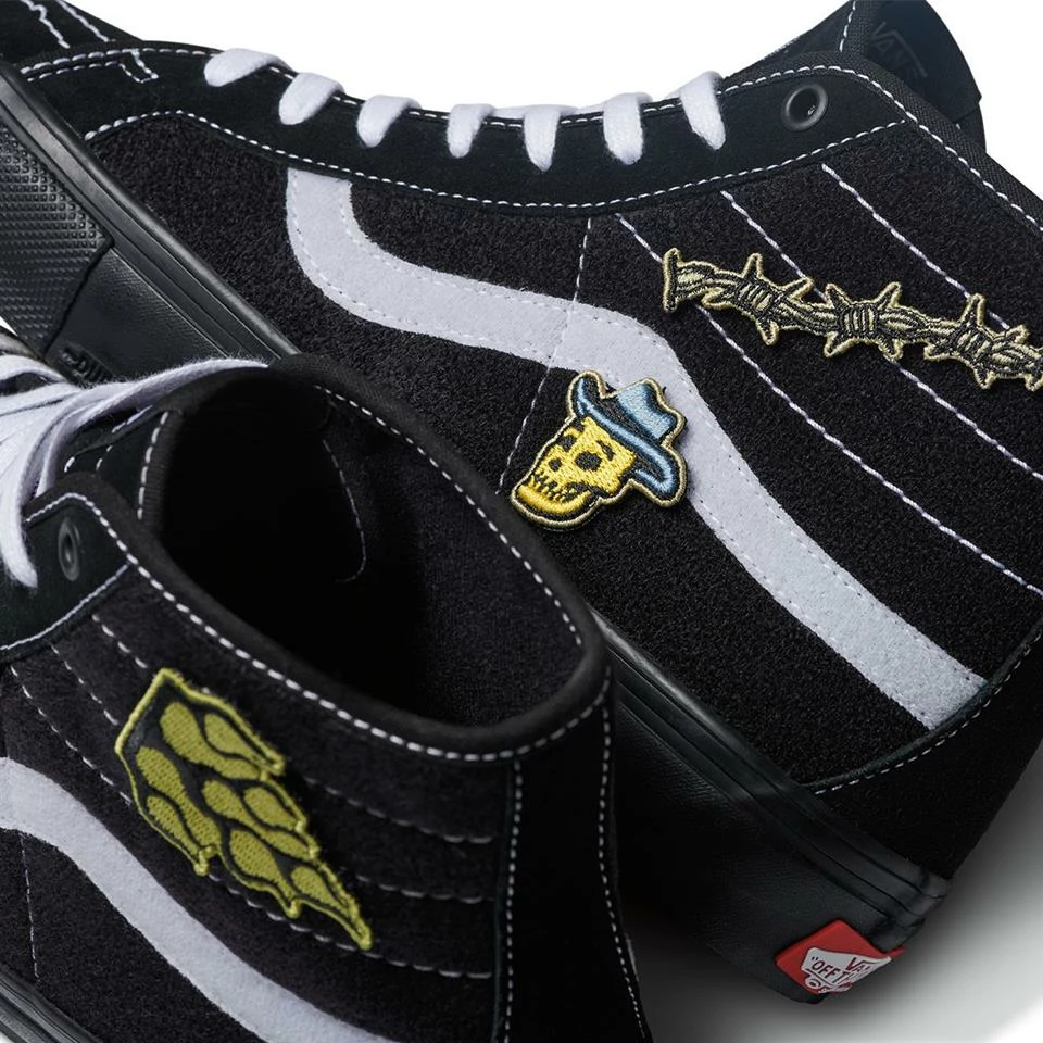 Another model from Elijah Berle’s Vans pack, the Sk8-Hi Decon Shoe takes inspiration from Elijah’s love of tattoo art, motorcycle culture and retro surf.