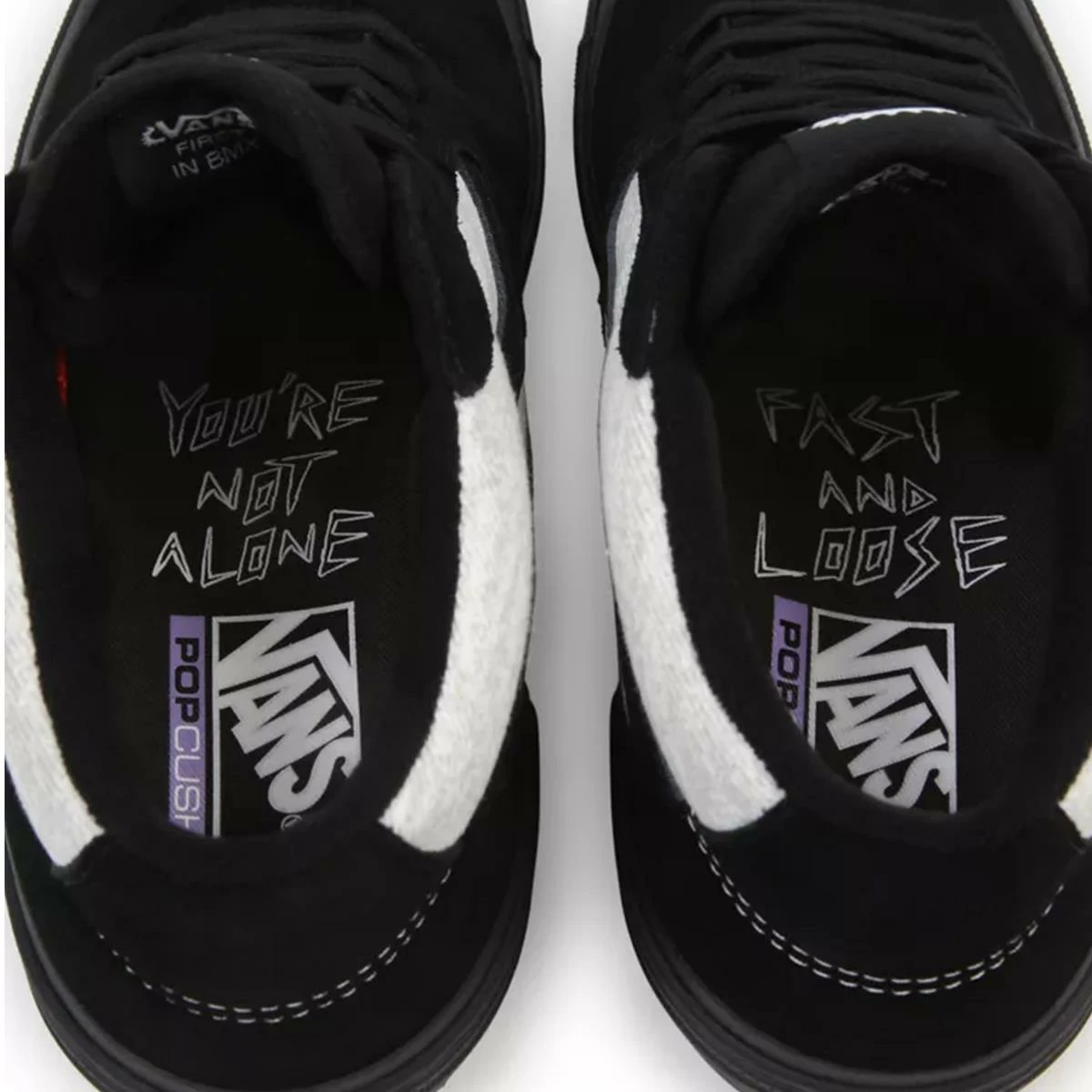 The Vans x Fast And Loose BMX Style 114 is made with suede, denim, and TecTuff leather uppers. Featuring an exclusive Fast And Loose colorway, the BMX Style 114 is made to handle the unique support and durability needs specific to BMX. Designed with BMX in mind, Vans added an integrated toe cap and a medial sidewall crank bash reinforcement for durability. It also features internal tongue straps to lock your feet in place and Popcushβ’ sockliners for extra cushioning and impact protection to keep you riding longer and progressing faster.